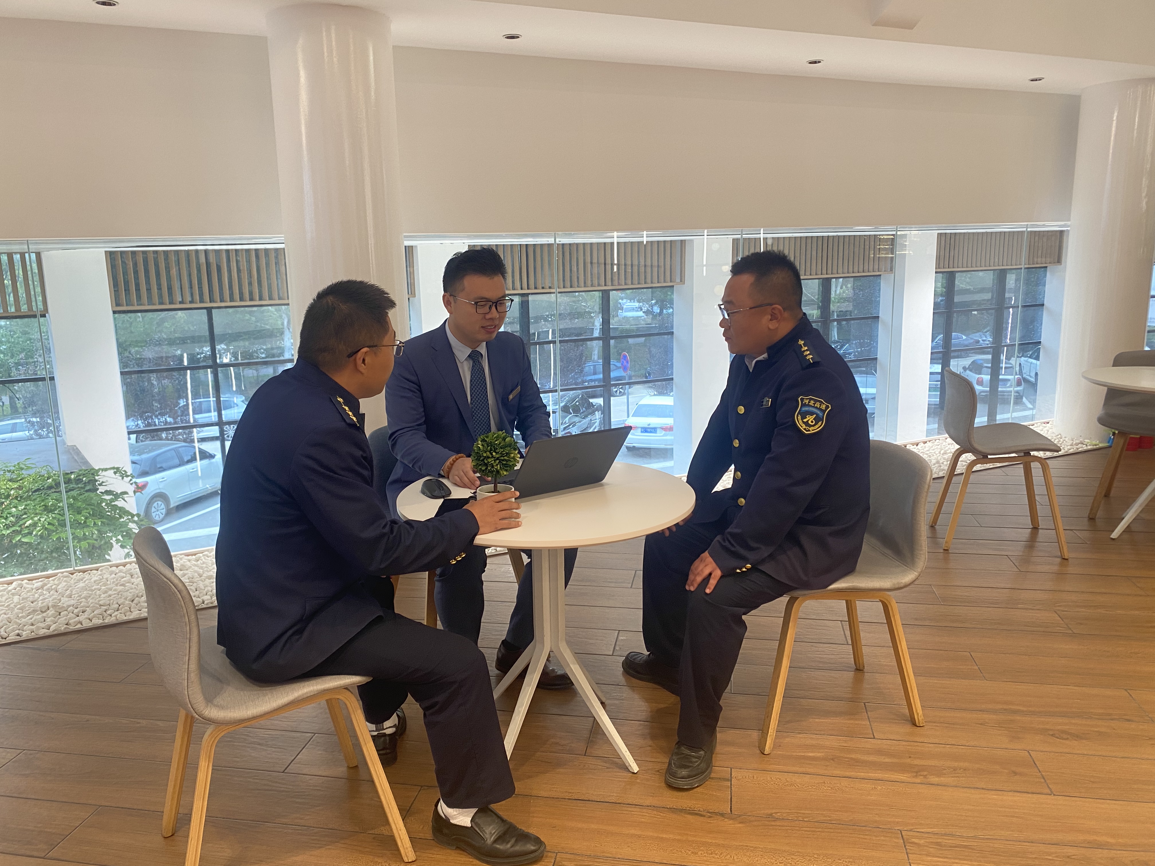 走访过程中,徐哲豪与4s店主要负责人进行了深入交流,详细了解了企业规模、经常行驶路线等信息,解答了ETC优惠和办理问题,同时邀请企业负责人加入秦北站客户服务微信群,更好、更及时的向企业提供最精准的路况、天气及最新的收费政策等信息。张子立向企业负责人介绍了高速智行APP的优点与注册使用方法。