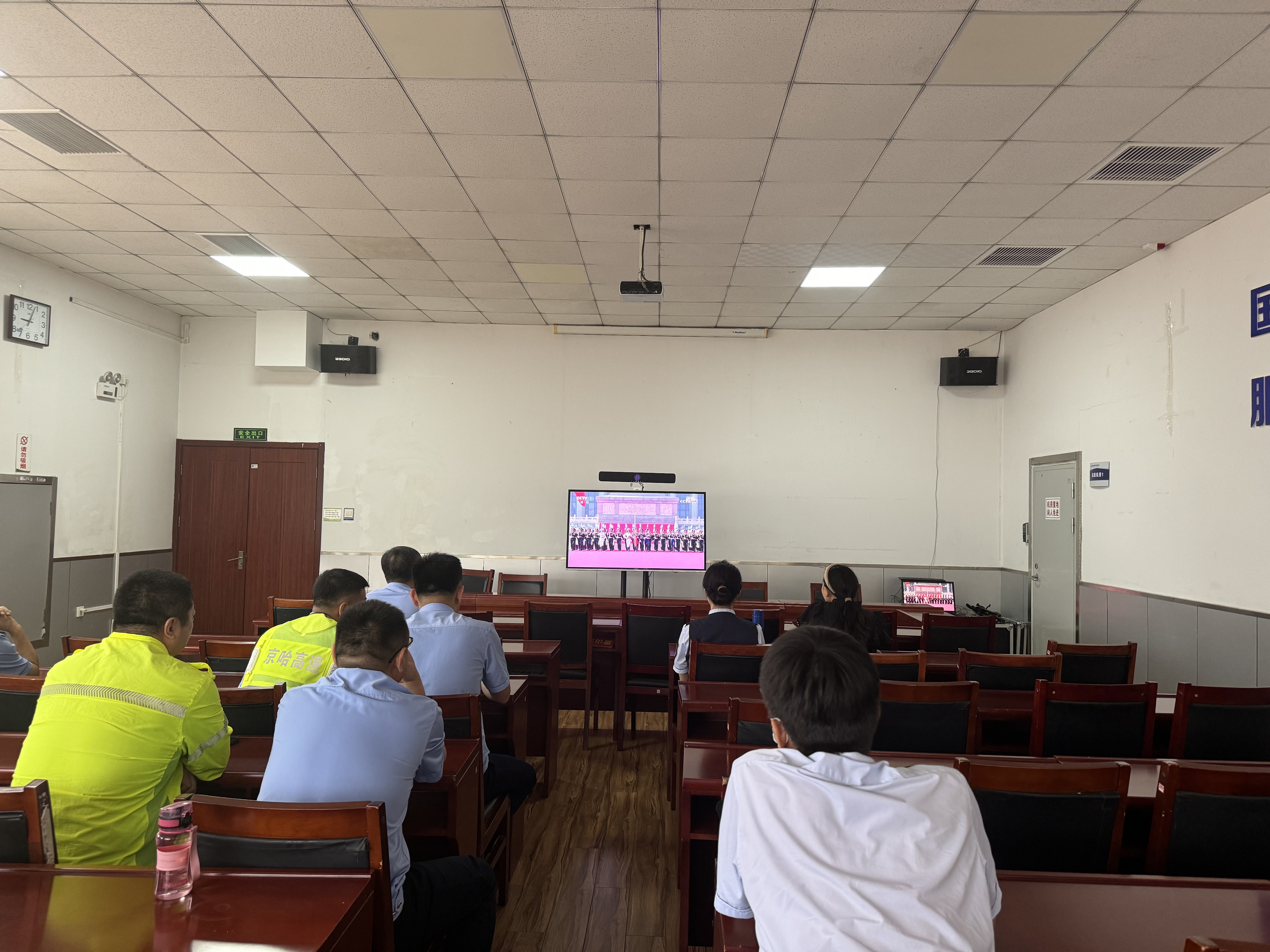 9月3日,京秦分公司唐山保通保畅应急大队组织全体队员集中观看了纪念中国人民抗日战争暨世界反法西斯战争胜利 80 周年大会。队员们怀着无比崇敬的心情,共同回顾那段艰苦卓绝的抗战历史,缅怀革命先烈的不朽功勋。