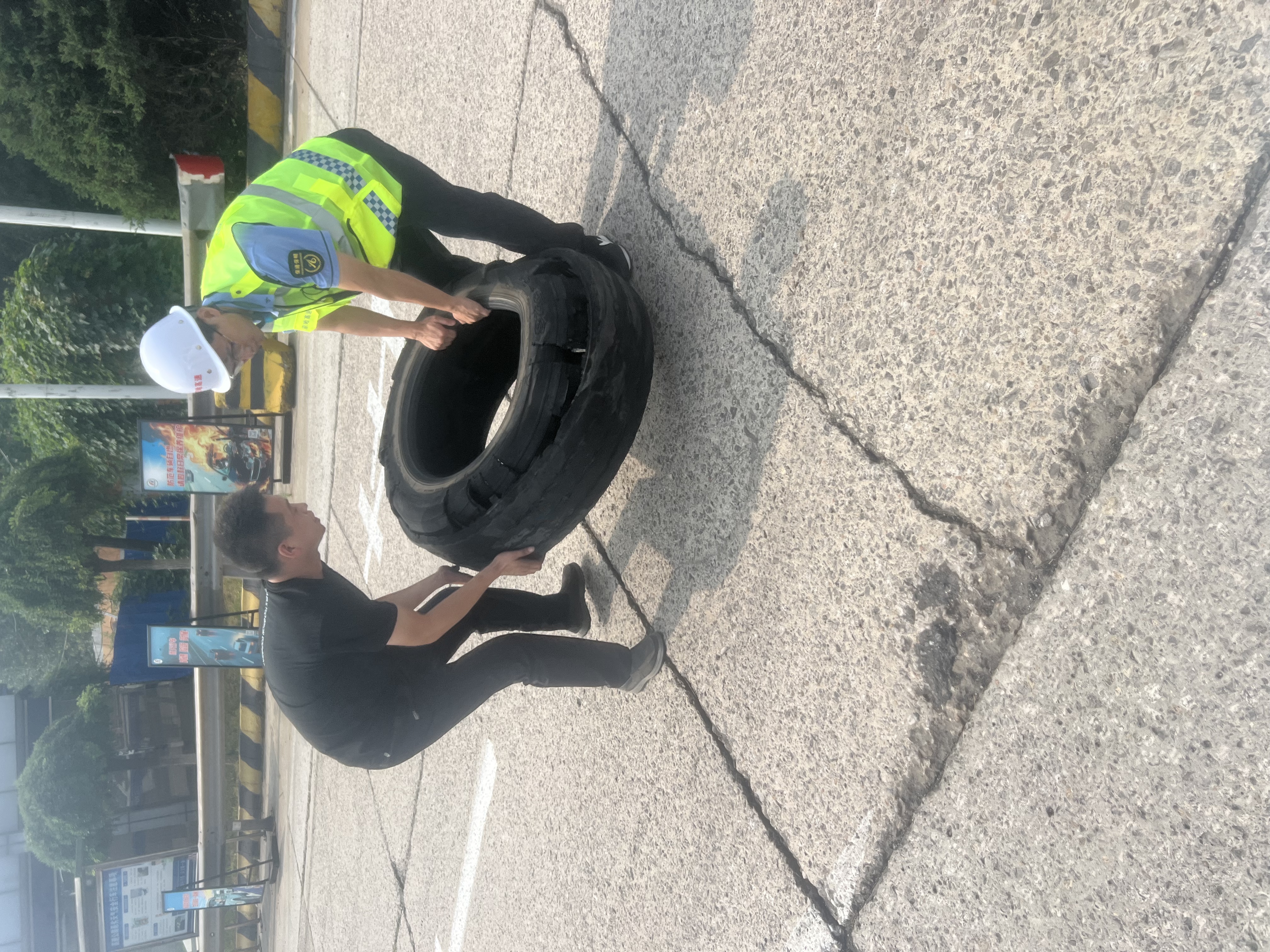 2025年9月4日,京秦分公司迁安保通保畅应急大队队员刘佳航、范震宇在京哈高速执行日常巡查任务时,于京哈高速沈阳方向k174路段发现一辆货车在应急车道缓慢行驶,经询问,货车轮胎存在损坏,需要更换轮胎。
