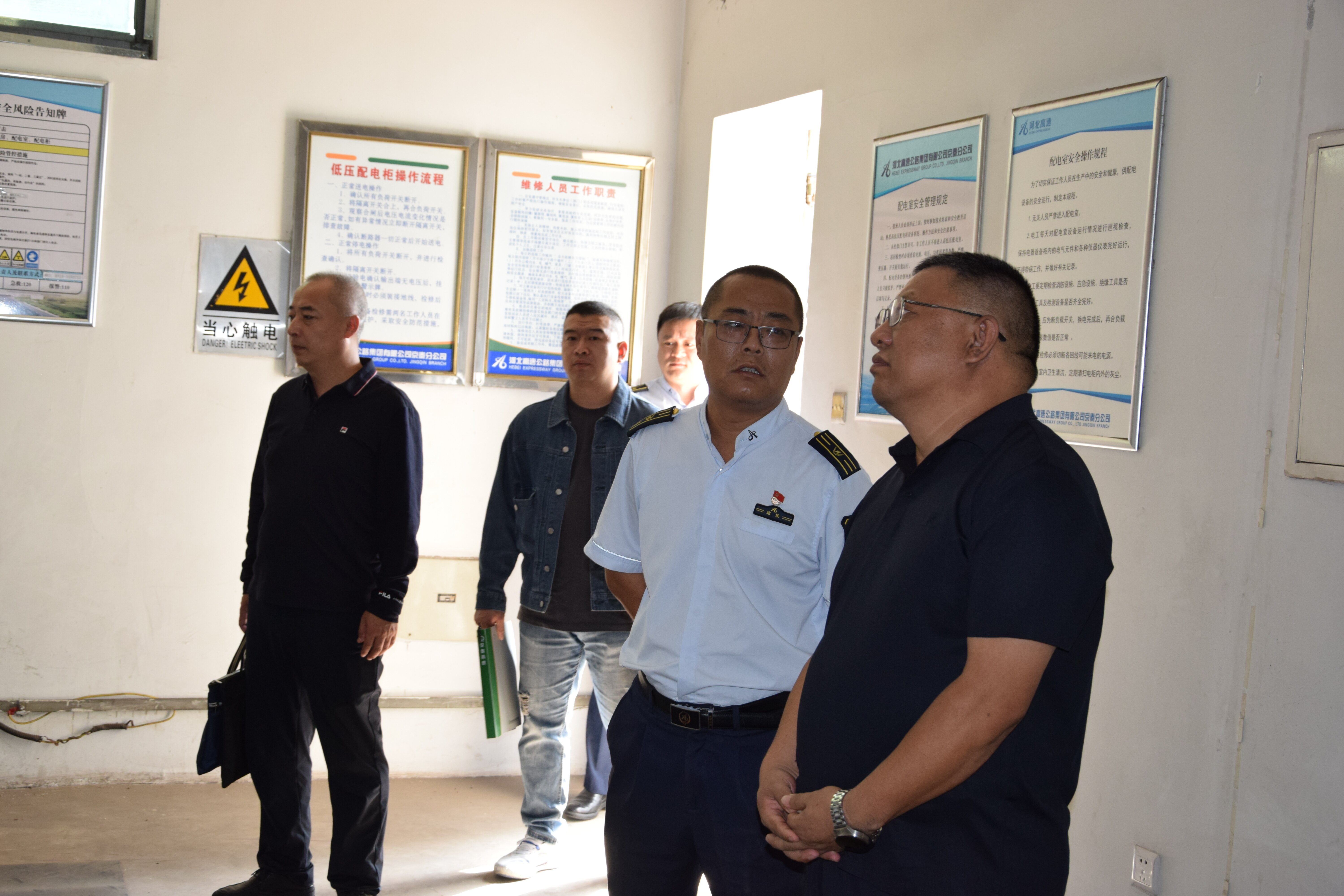 督导组实地查看了空气能房、设备机房、配电室、消防设施及重点区域,详细询问设备运行与维护情况。随后,站负责人围绕站区基本情况、收费运营管理、安全管理举措及国庆、中秋双节筹备情况进行详细汇报。