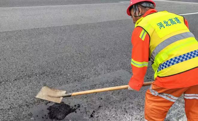 10月8日,巡查人员在北京方向K138+500位置发现一处路面坑槽。巡查人员当即布设警示标识引导车流,联系唐山养护队进行修补作业,并同步协调现场交通疏导事宜。在唐山保通保畅应急大队和唐山养护队的共同努力下, 15 分钟内完成人员、材料、设备集结,40 分钟内高效完成坑槽修补作业,路面迅速恢复畅通。
