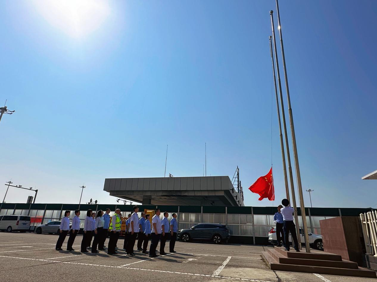 国庆佳节,举国同庆。10 月 1 日清晨,京秦分公司唐山北收费站的广场上,一面鲜艳的五星红旗冉冉升起,全体在岗职工身着整齐制服,神情肃穆地向国旗行注目礼,用一场庄重的升旗仪式,开启了国庆假期的第一天,也为过往司乘送上了最真挚的节日祝福。