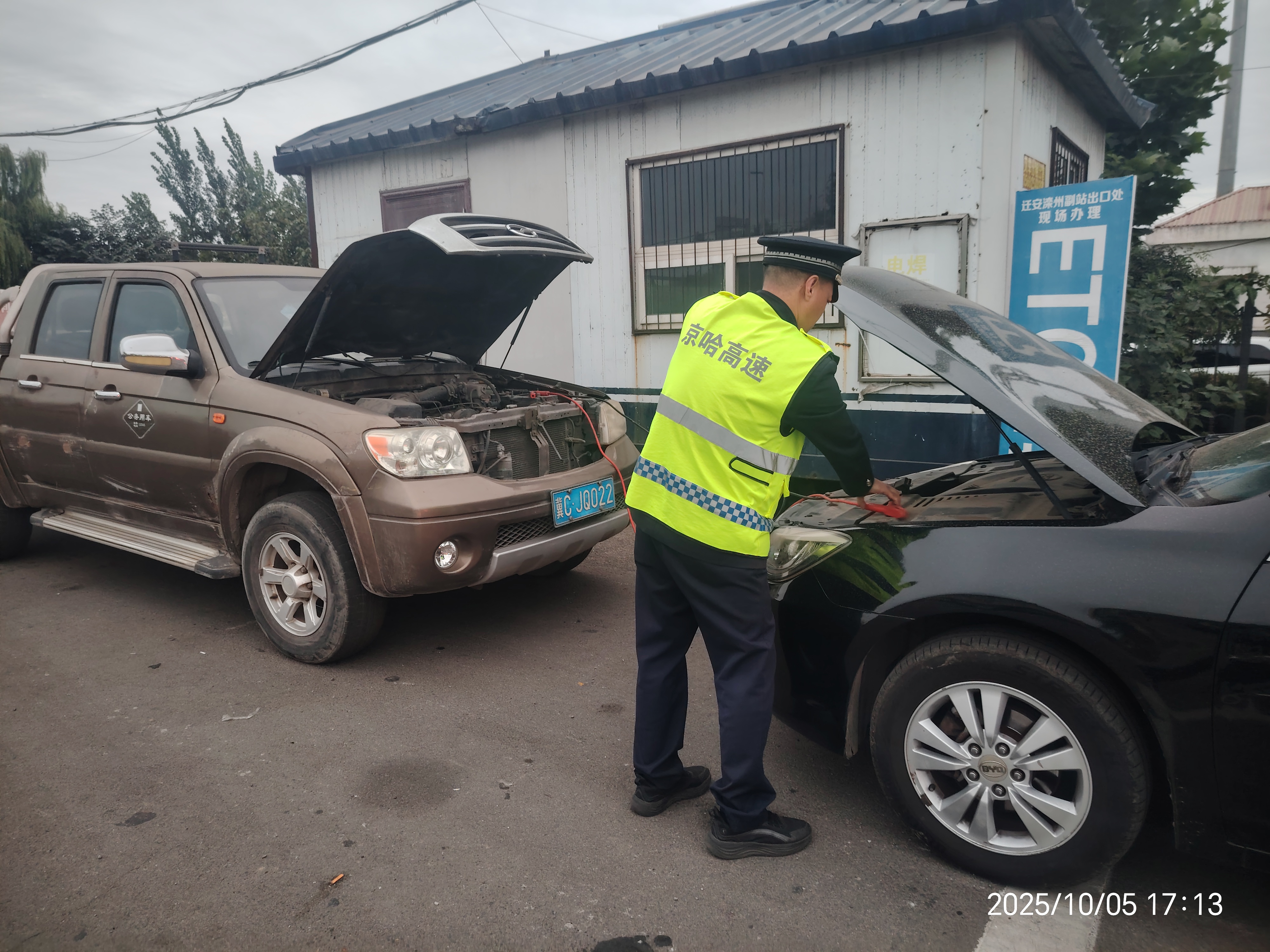 10 月 5 日下午 5 时许,京秦分公司迁安收费站出口车道,一辆小轿车突然熄火,多次启动均无反应,司机焦急地在车旁徘徊张望。正在现场值守的疏导员见状迅速上前询问,得知车辆因电瓶亏电陷入故障。为保障车道畅通与现场安全,疏导员立即协助司机将车辆引导至外广场安全区域,并快速上报当班班长。班长赶到后,当即从便民服务台取出应急充电设备 —— 这是收费站常态化配备的便民物资之一,专为应对此类突发状况准备。班长和疏导员按照安全操作规程熟练接线、启动设备,短短几分钟后,随着发动机顺利运转,车辆成功恢复启动能力。“真是太及时了!正发愁不知道找谁帮忙,你们的服务太贴心了!” 司机紧紧握住工作人员的手再三致谢。