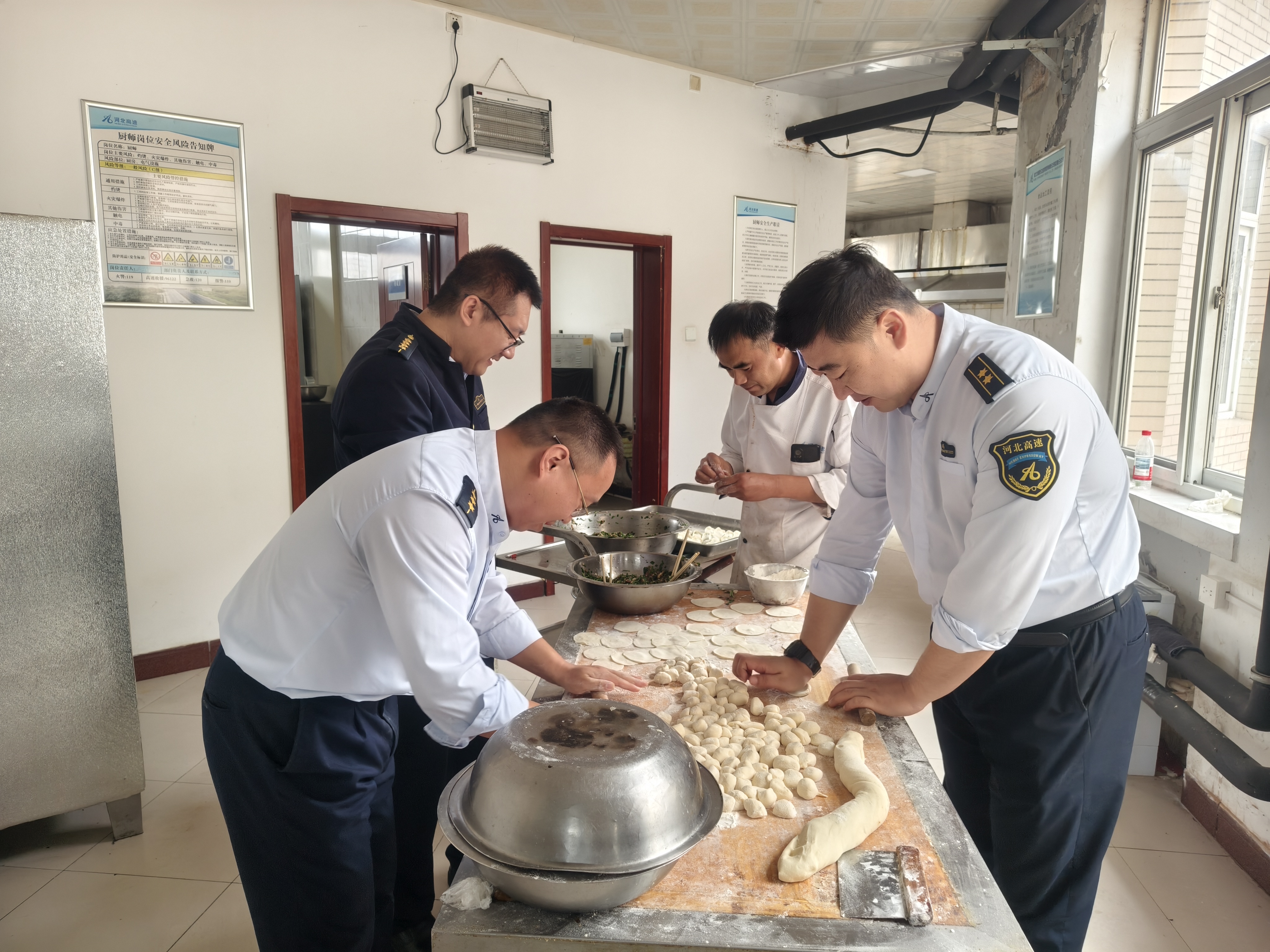 食堂里,“团圆庆中秋,暖心聚合力”主题活动正热闹开展。离午餐还有半个多小时,职工们已自发围在操作台前分工协作:揉面的职工手腕翻飞,将面团揉得光滑劲道;擀皮的职工手法娴熟,一张张圆薄均匀的饺子皮接连落下;包馅的“老手”则手把手教新手捏褶,指尖翻动间,月牙形、柳叶形的饺子整齐码在托盘上,食堂里的欢声笑语裹着面香飘出老远。值班站长李瑾捧着礼盒穿梭其间,将包装精致的月饼逐一分到职工手中:“大家坚守岗位辛苦了,吃块月饼沾沾节日喜气,忙完记得歇一歇。”午餐时分,热气腾腾的饺子端上桌,职工们围坐畅谈,分享着工作里的趣事与生活中的家常,虽不能与家人团聚,却在站区感受到了“第二个家”的温暖。