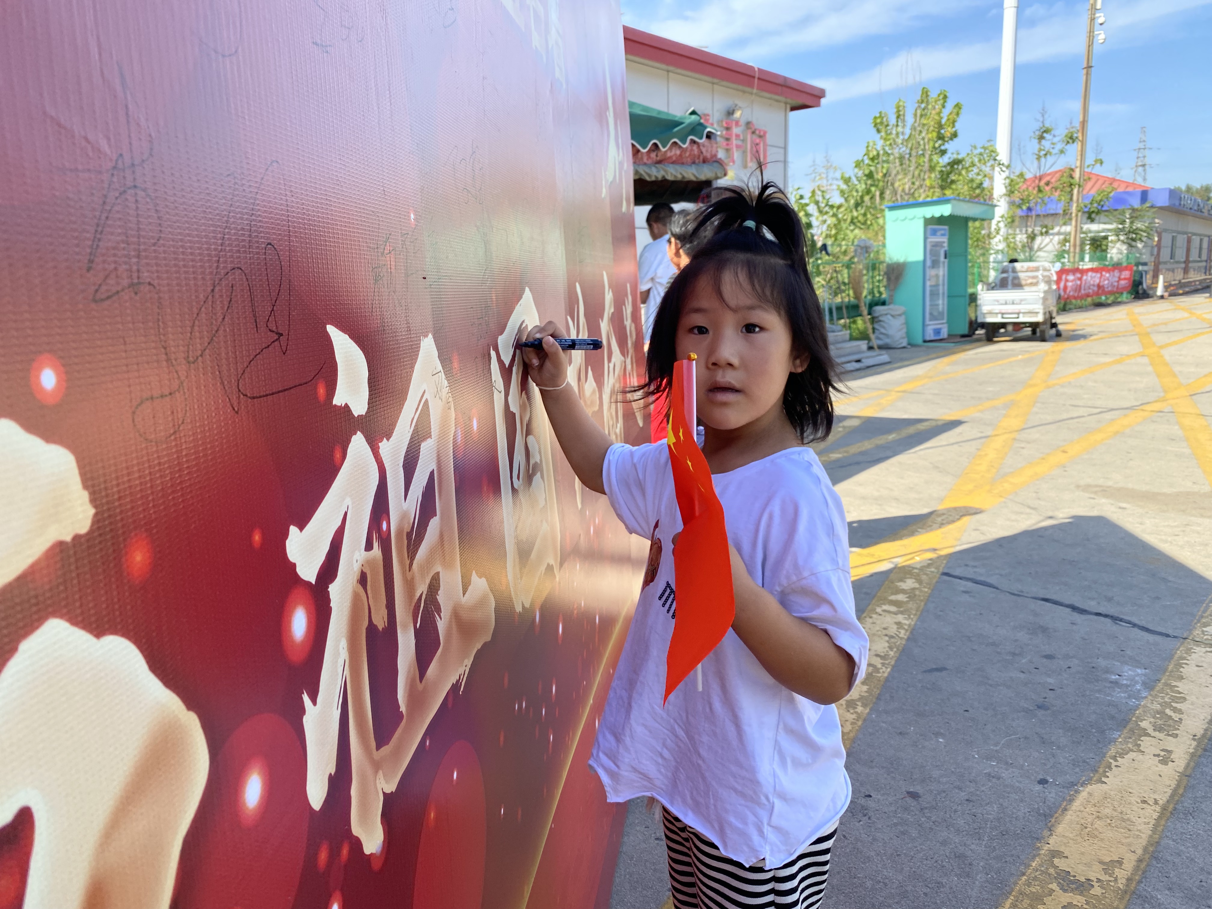 来自天津的自驾游客王先生特意牵着孩子的小手停在签名墙前,耐心指导孩子写下“祝祖国生日快乐”,稚嫩的字迹里满是真诚。他笑着说道:“愿祖国越来越好,我们的旅途也开开心心!”话语中藏着对祖国的祝福与旅途的期待。
