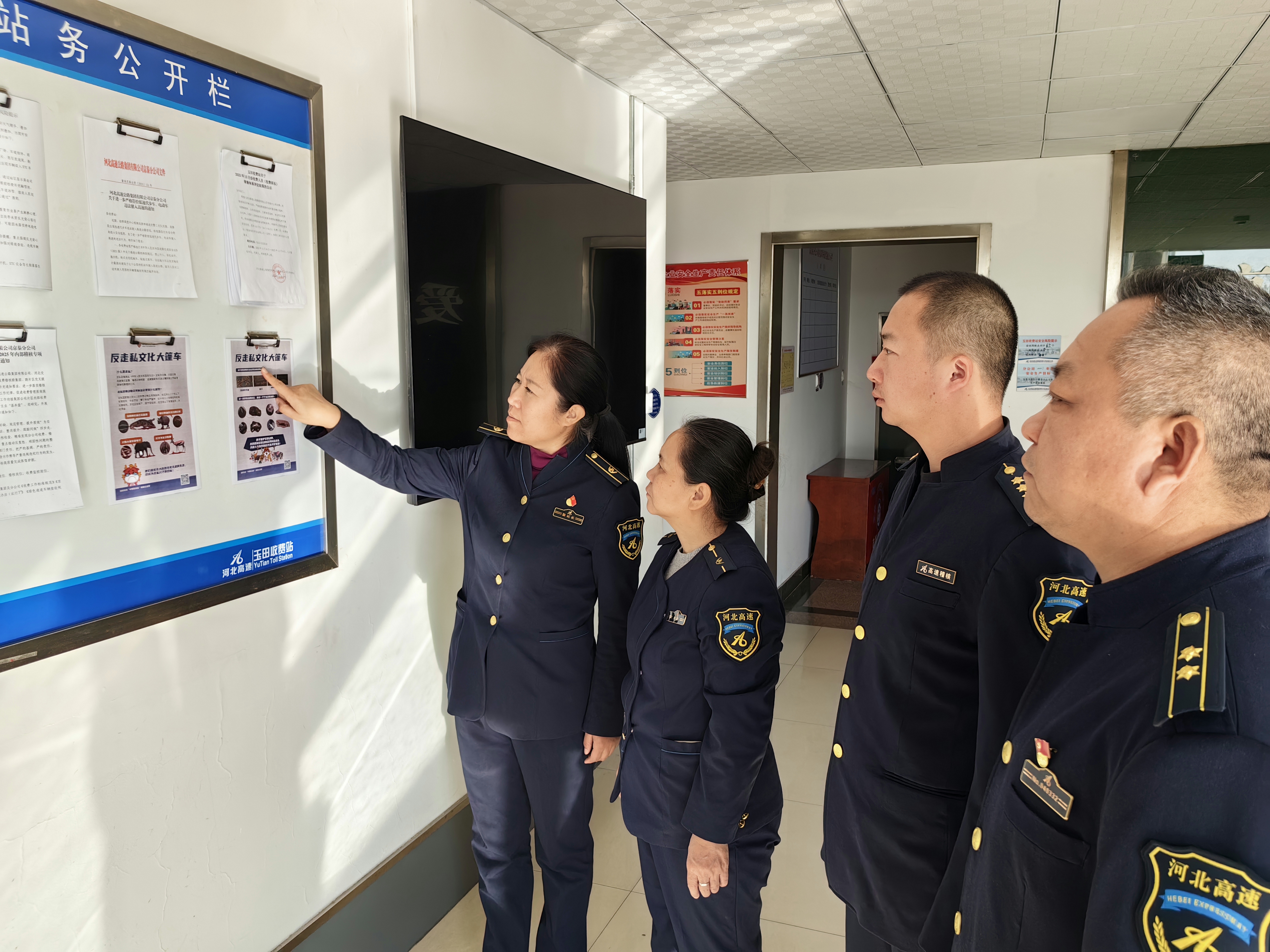 活动中,组织在站职工集中观看反走私主题宣传片,通过典型案例直观展现走私行为的法律后果与社会危害;同时在收费窗口发放自制反走私宣传图片,收费员在车辆通行时主动发放,引导司乘人员了解走私常见形式、鉴别方法及举报渠道。
