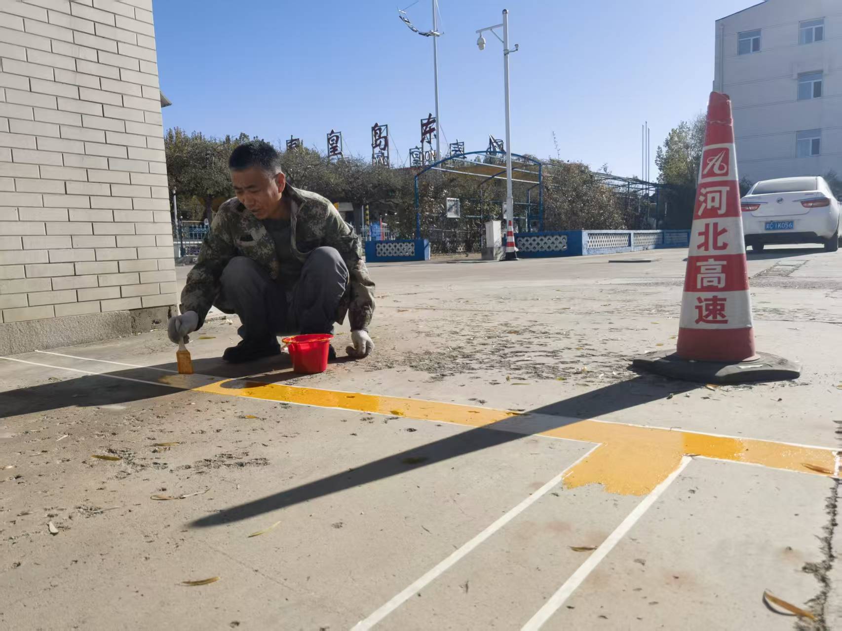 收费站实地排查站区闲置场地、现有停车区域布局,结合职工车辆保有量、车型特点科学规划,合理增设停车泊位,明确划分机动车停放区域,同步标注导向标识、禁停标线,确保车位规划规范有序、适配实用。施画过程中,站内选用耐磨防滑涂料,保障车位标线清晰醒目、经久耐用,后勤职工完成测量、施画等环节,大幅降低运维成本。