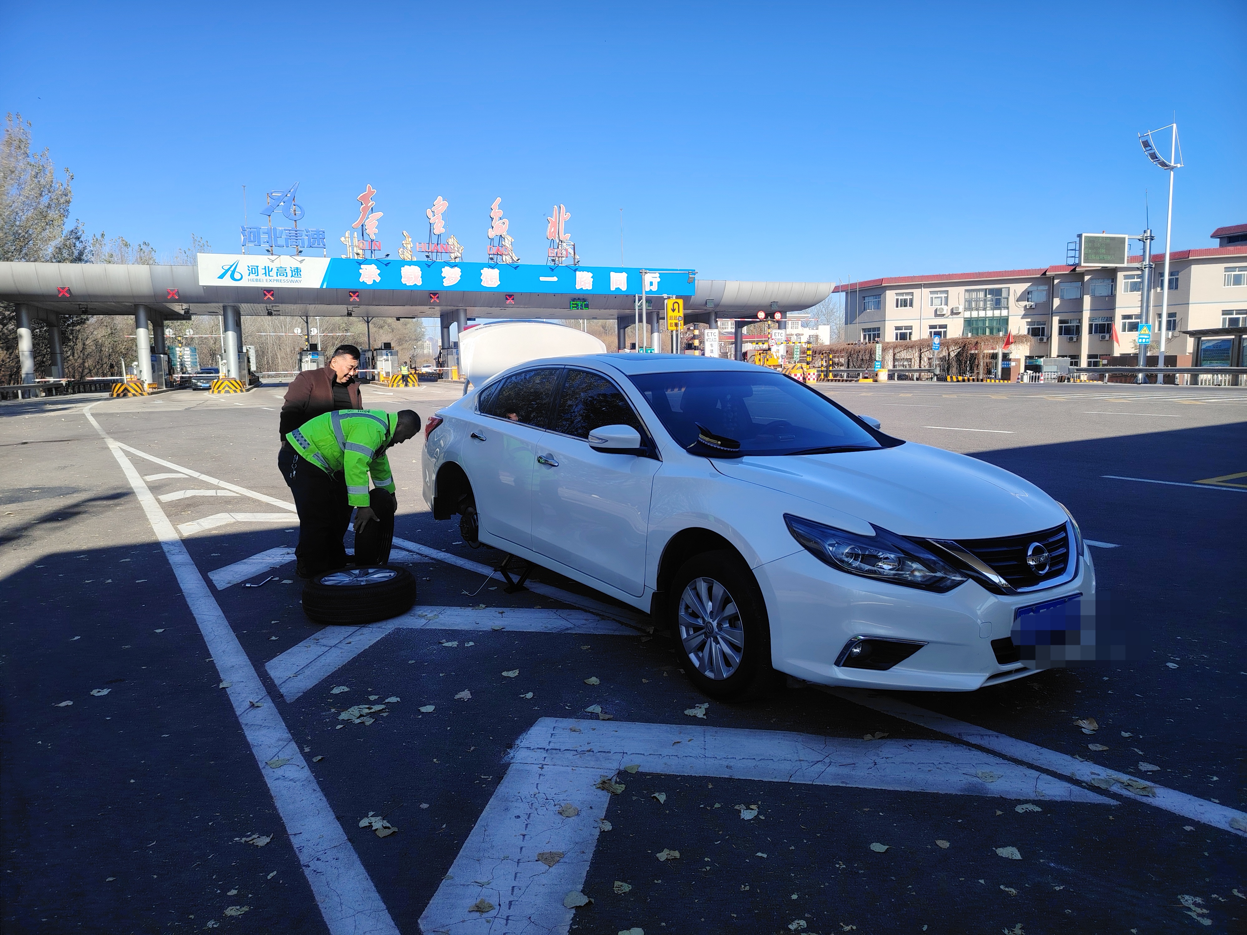 11月21日,京秦分公司秦皇岛北收费站收费一班值岗期间,一辆私家车在即将驶入收费站时突发轮胎爆胎,被迫停在广场排水渠旁。面对这一突发状况,司机手足无措,神情十分焦急。