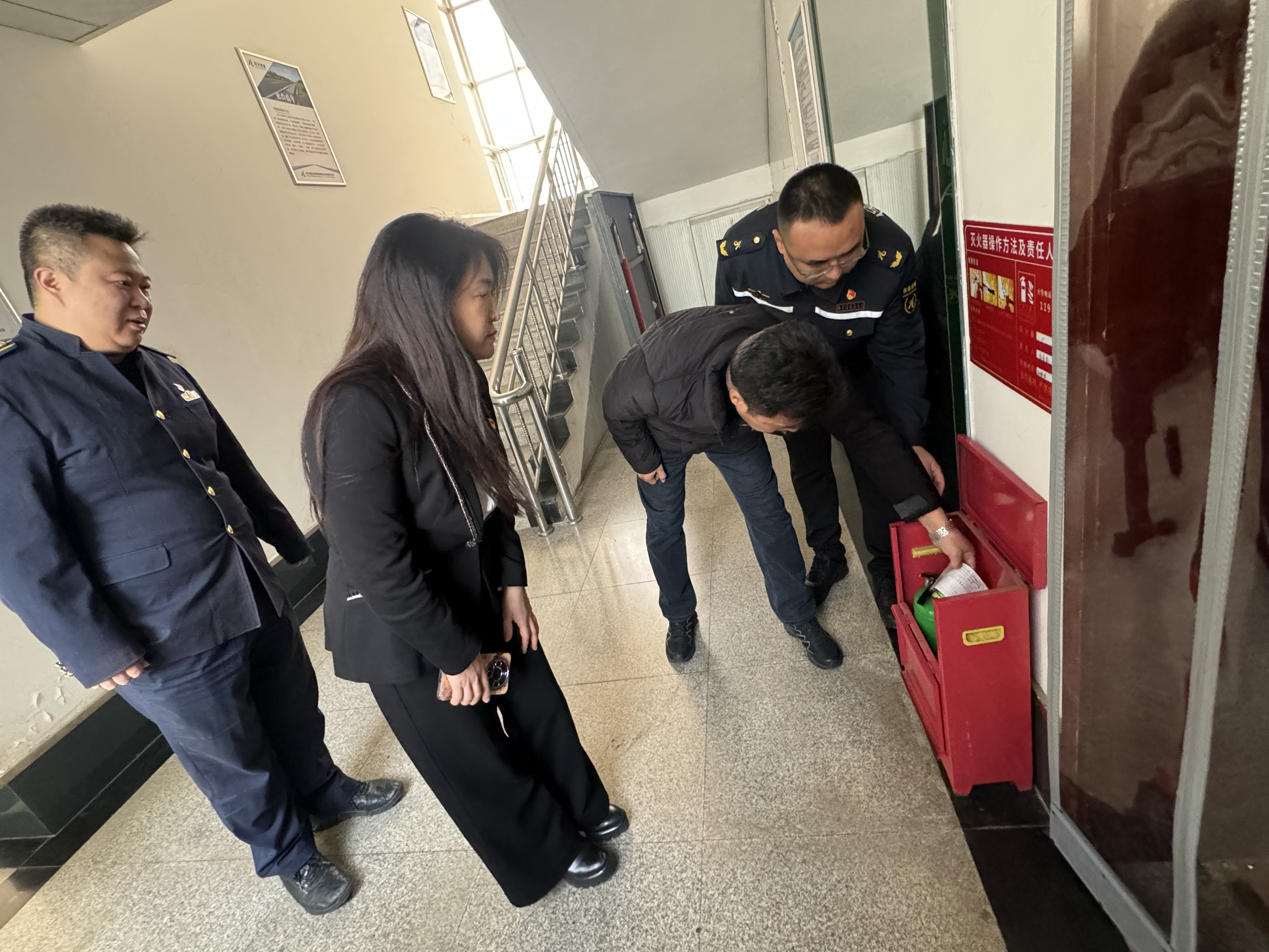 此次督导检查聚焦冬季道路保通保畅核心需求,从消防安全、除雪物资储备、设备保障三大维度精准发力。在应急大队办公楼区域,检查组排查灭火器、消防栓等器材的配置数量、有效期及压力状态,细致核查消防通道通行情况与应急照明设备启用状态;室外重点查验消防栓供水能力、消防沙池储备量及消防器材摆放规范度,全方位筑牢消防安全防线。