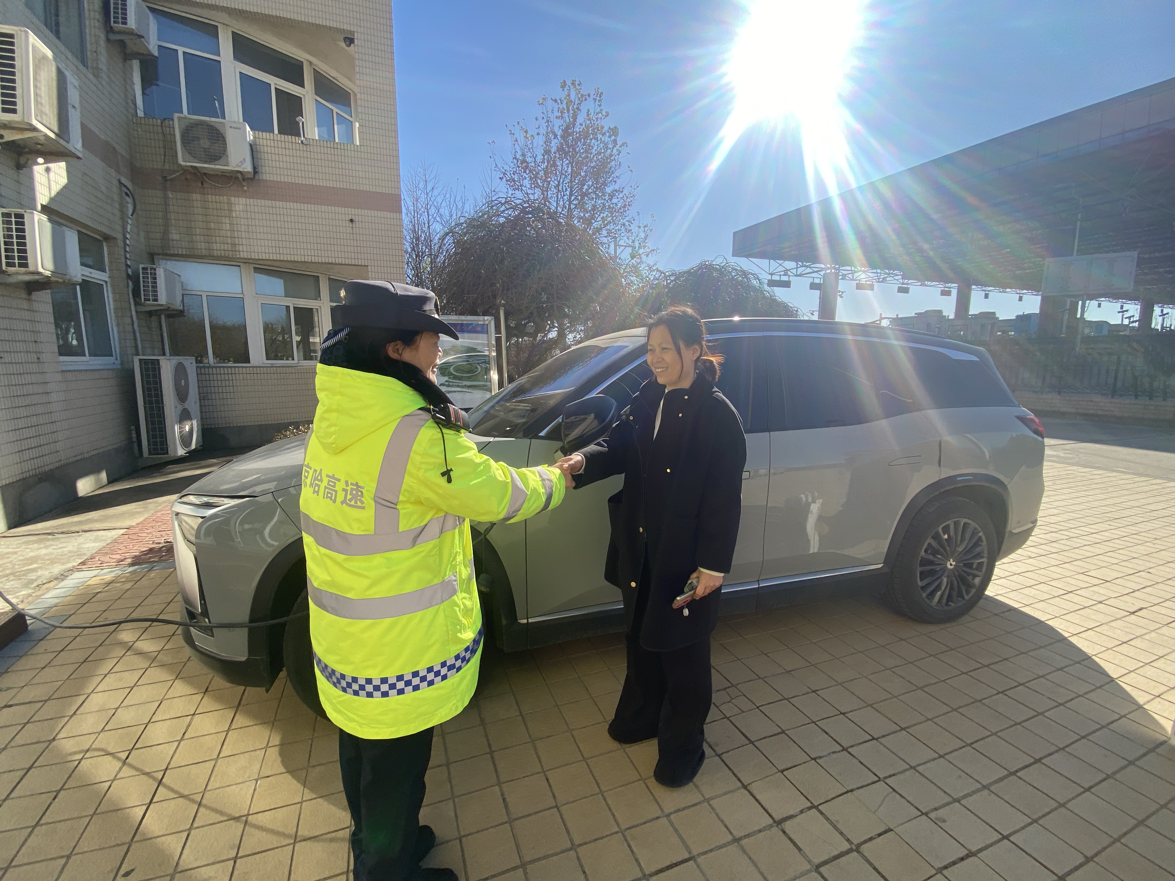 12月2日,一辆新能源汽车行驶至京秦分公司北戴河收费站外广场时突发电量告急,续航不足无法抵达就近充电站,车主紧急向工作人员求助。