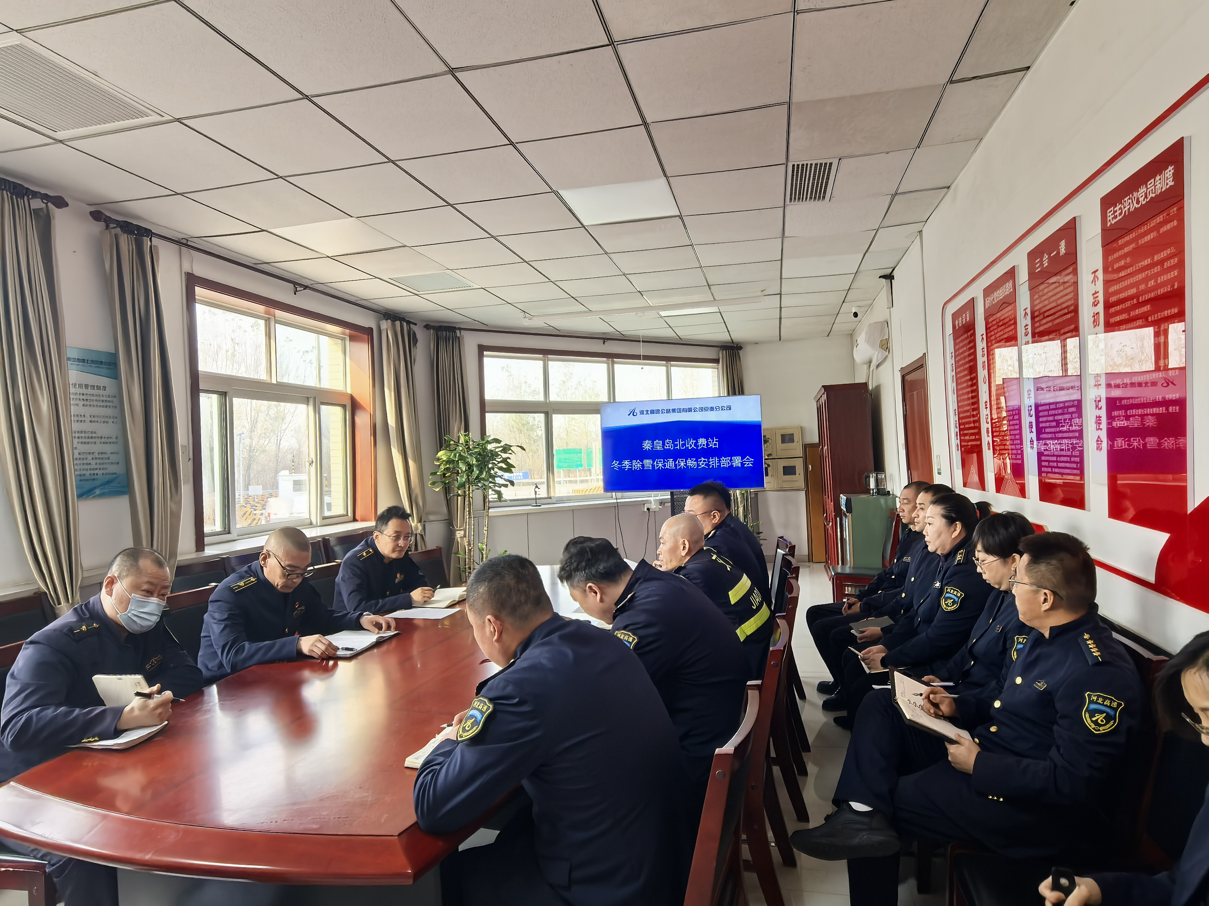强化统筹部署,健全联动机制。收费站第一时间修订完善并下发《冬季除雪保畅应急预案》,明确各岗位职责和工作流程。同时,加强与高速交警、秦皇岛保通保畅应急大队的沟通协作,建立实时信息共享机制。