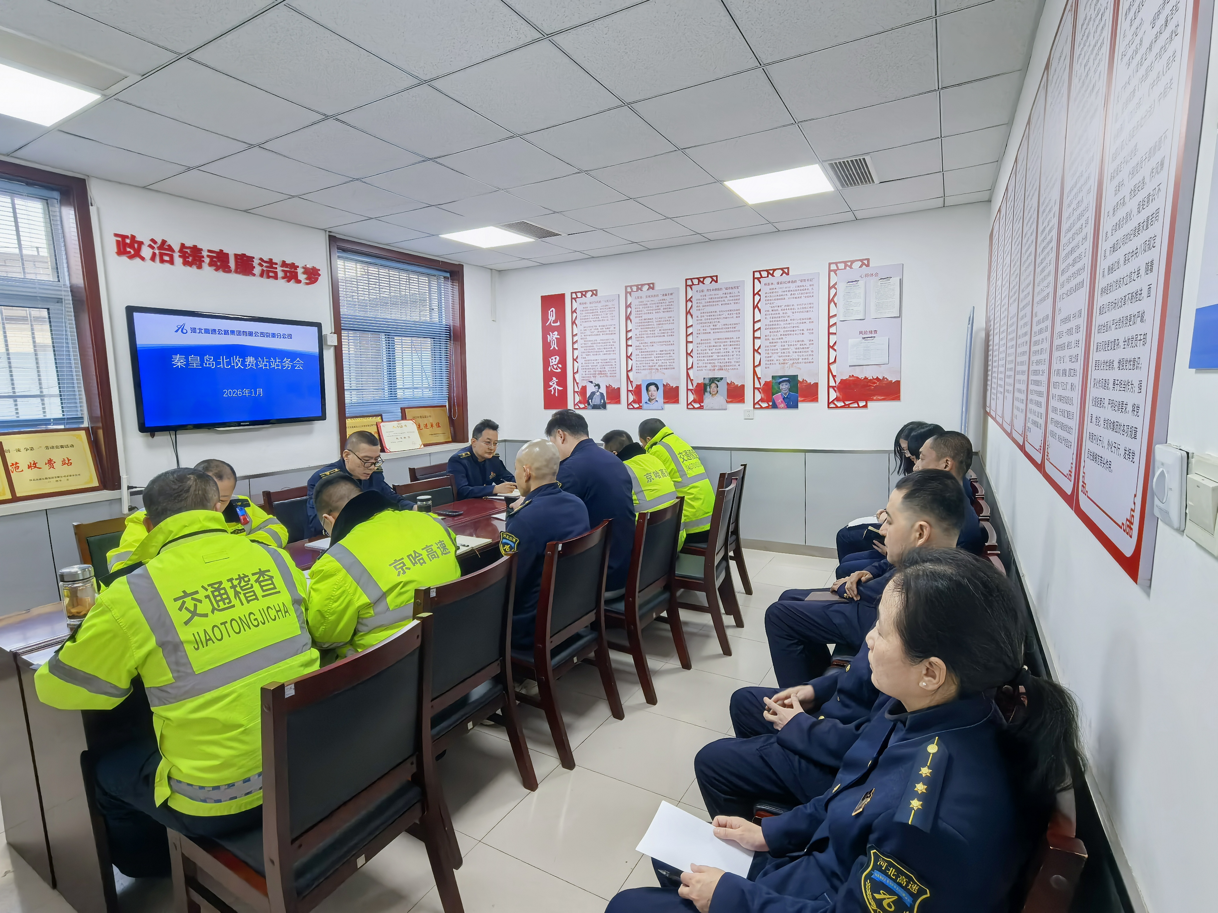 1月16日,京秦分公司秦皇岛北收费站召开站务会,重点传达学习集团公司与京秦分公司“三会”精神,系统部署春节假期安全保畅工作,以“早谋划、细部署、严落实”的工作姿态,为节日期间收费站的安全畅通运营、优质高效服务筑牢坚实根基。