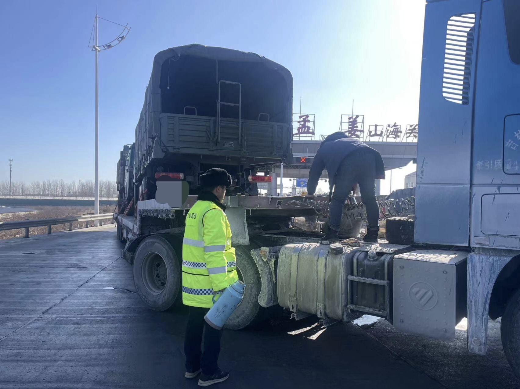 在收费站广场内外,随处可见身着反光马甲的工作人员往来忙碌。他们手提热水壶,主动为滞留车道的故障车辆提供热水,协助司机解冻油路、排查故障。寒风凛冽,他们奔走服务的身影,成为这个冬日最动人的风景。