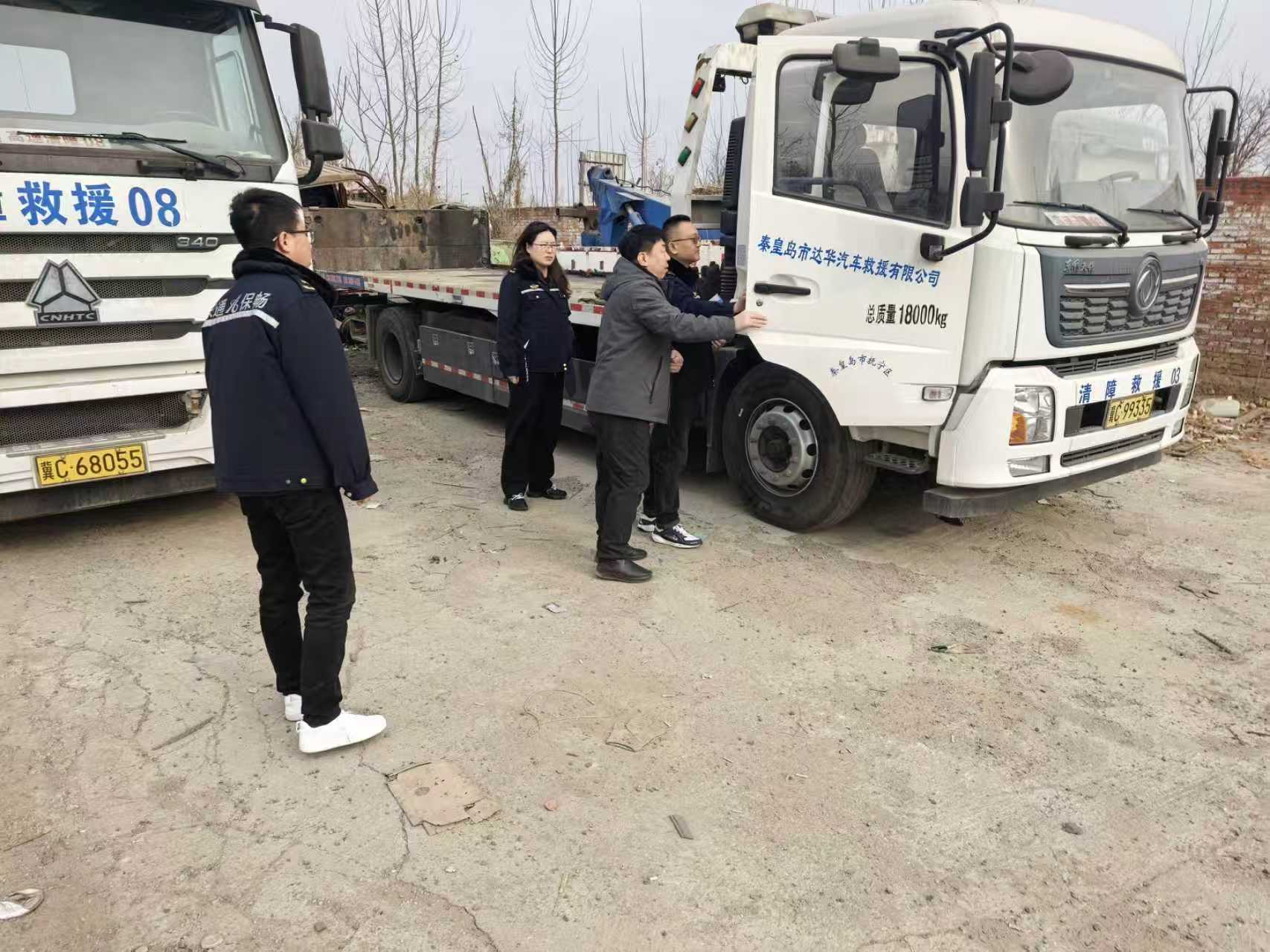 为切实保障春运及春节期间高速公路通行安全有序,全面规范辖属救援单位运营管理工作,1 月28日,京秦分公司秦皇岛保通保畅应急大队副大队长刘林一行,对辖属三家救援公司开展全面督导检查。