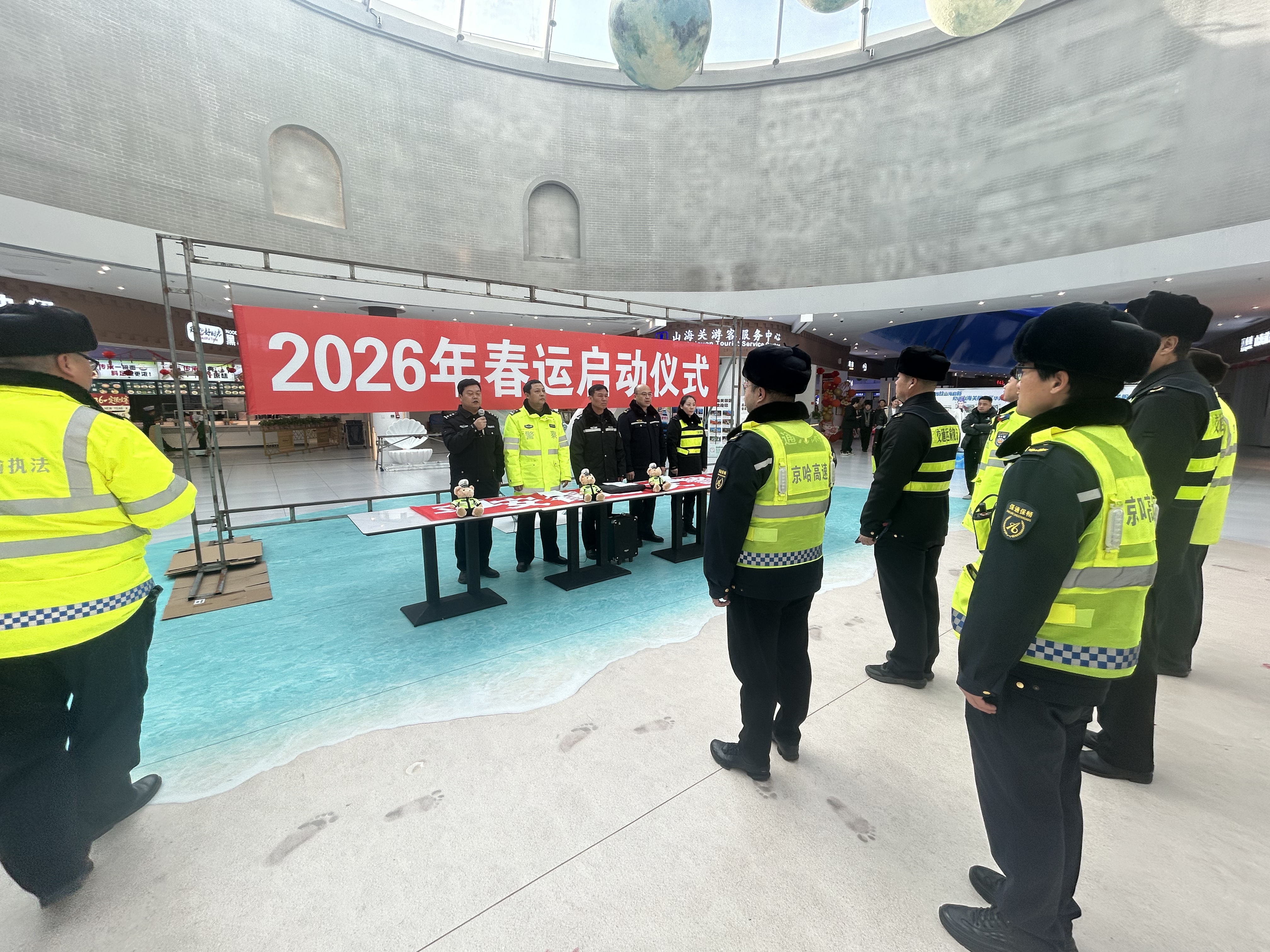 为切实筑牢G1高速秦皇岛段春运道路交通安全防线,深入贯彻落实京秦分公司春运工作部署,全力保障群众平安有序出行,2026年2月2日,京秦分公司秦皇岛保通保畅应急大队与高速交警、路政部门联合,在G1高速山海关服务区举行2026年春运启动仪式,以实干启动春运模式。