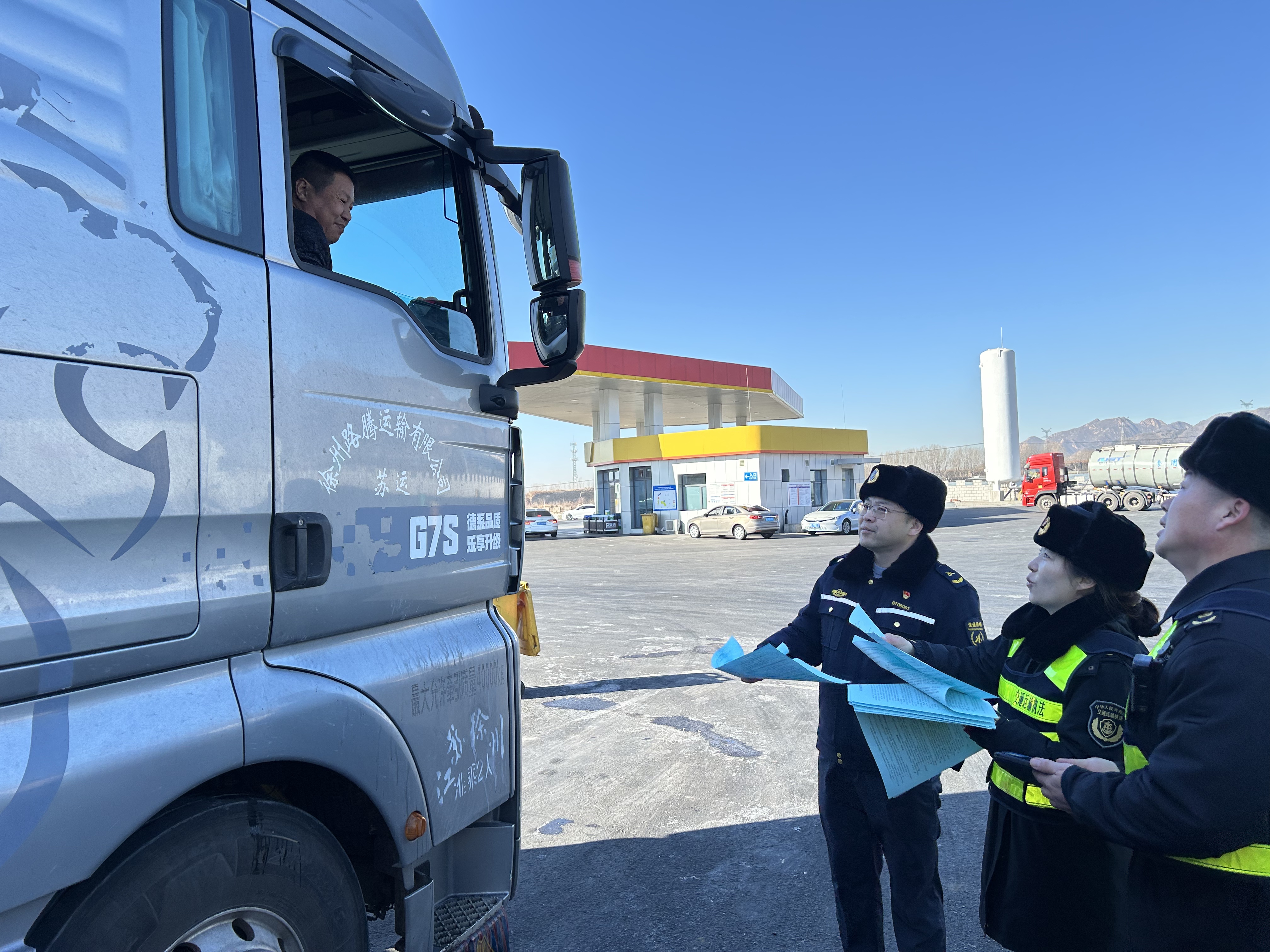 启动仪式结束后,应急大队工作人员在山海关服务区开展交通安全宣传活动,向停车休息的司机发放超限超载告知单和一键救援宣传卡,结合典型案例细致讲解超限超载的安全危害,普及高速公路应急救援知识,手把手指导司乘掌握一键救援使用流程,告知其发生事故或故障后,可通过一键救援快速传递现场信息,等待专业救援力量处置,切实提升司乘人员安全出行意识和应急自救能力,从源头防范交通事故发生。