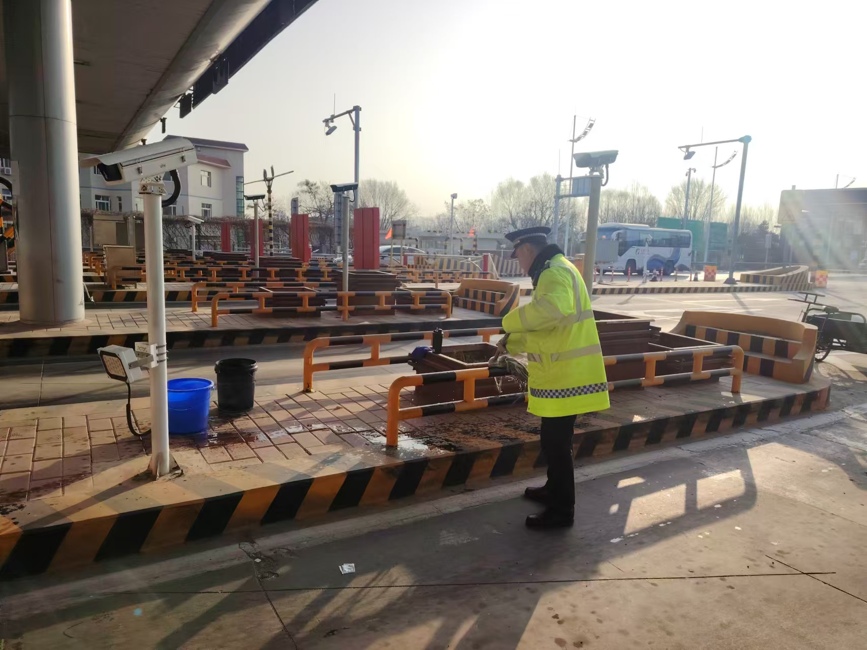 工作人员合理分工、协同配合,对收费车道、广场区域、收费岗亭等重点区域进行全方位清洁。大家手持清扫工具,仔细清理路面杂物、边角垃圾,擦拭收费窗口、标识标牌,规整便民服务物资,不放过任何卫生死角。针对车流量大、垃圾易堆积的区域,班组还建立了动态保洁机制,及时清理路面杂物,确保通行环境始终干净整洁。