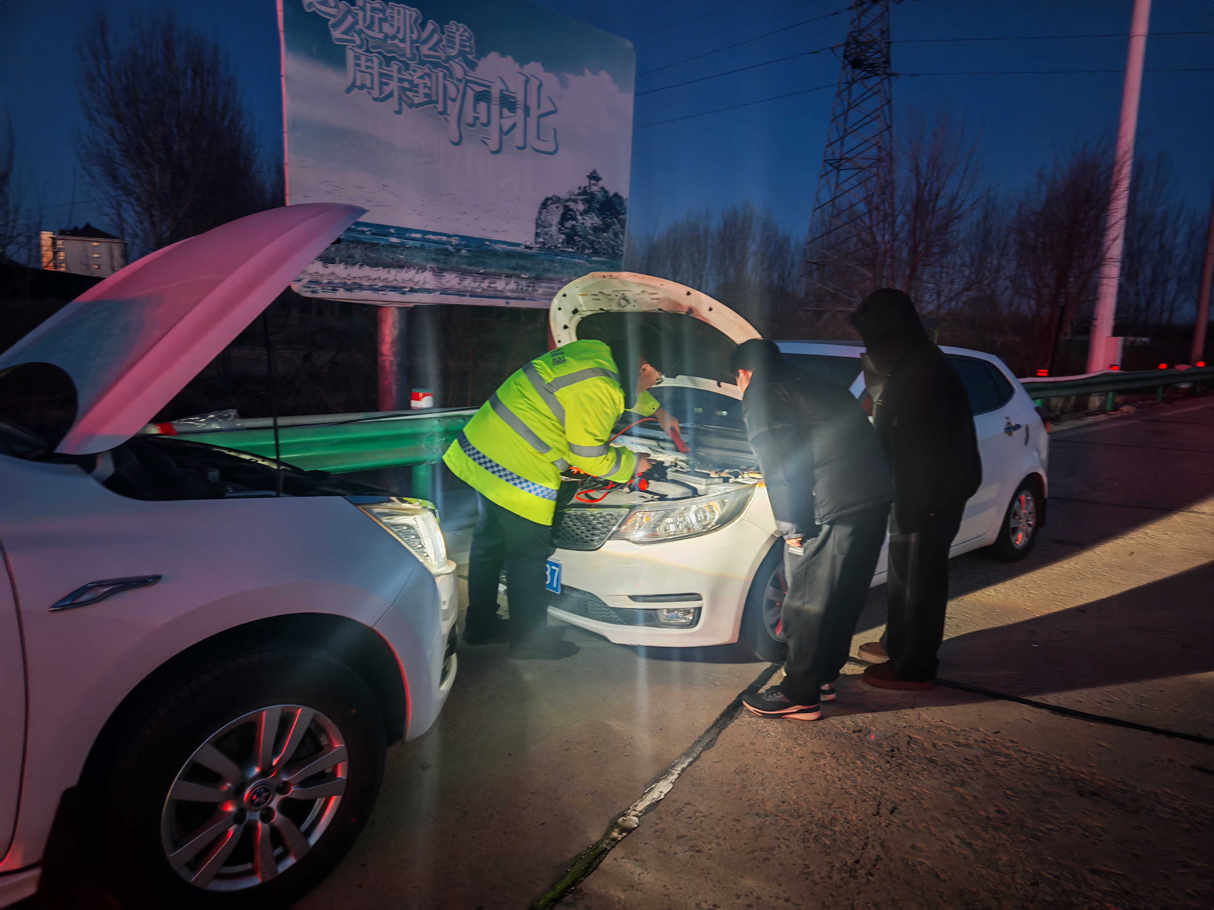 2026年2月8日清晨,一辆私家车在京秦分公司北戴河收费站因天气寒冷导致电瓶亏电,无法启动。司机焦急地解释道:“车才停了五分钟,突然就打不着火了!”