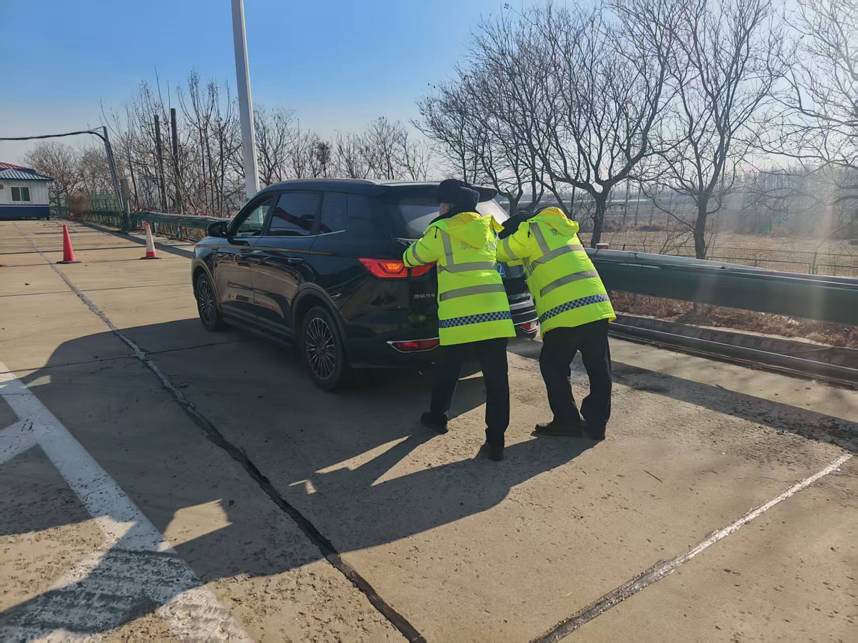 大年初三,京秦分公司北戴河收费站收费二班班长杨树丰与疏导员李钢在值岗时,敏锐发现距站约一公里的内广场路边,一辆黑色SUV停滞不前,乘客焦急万分。二人立即上前查看,得知车辆因燃油耗尽无法行驶。