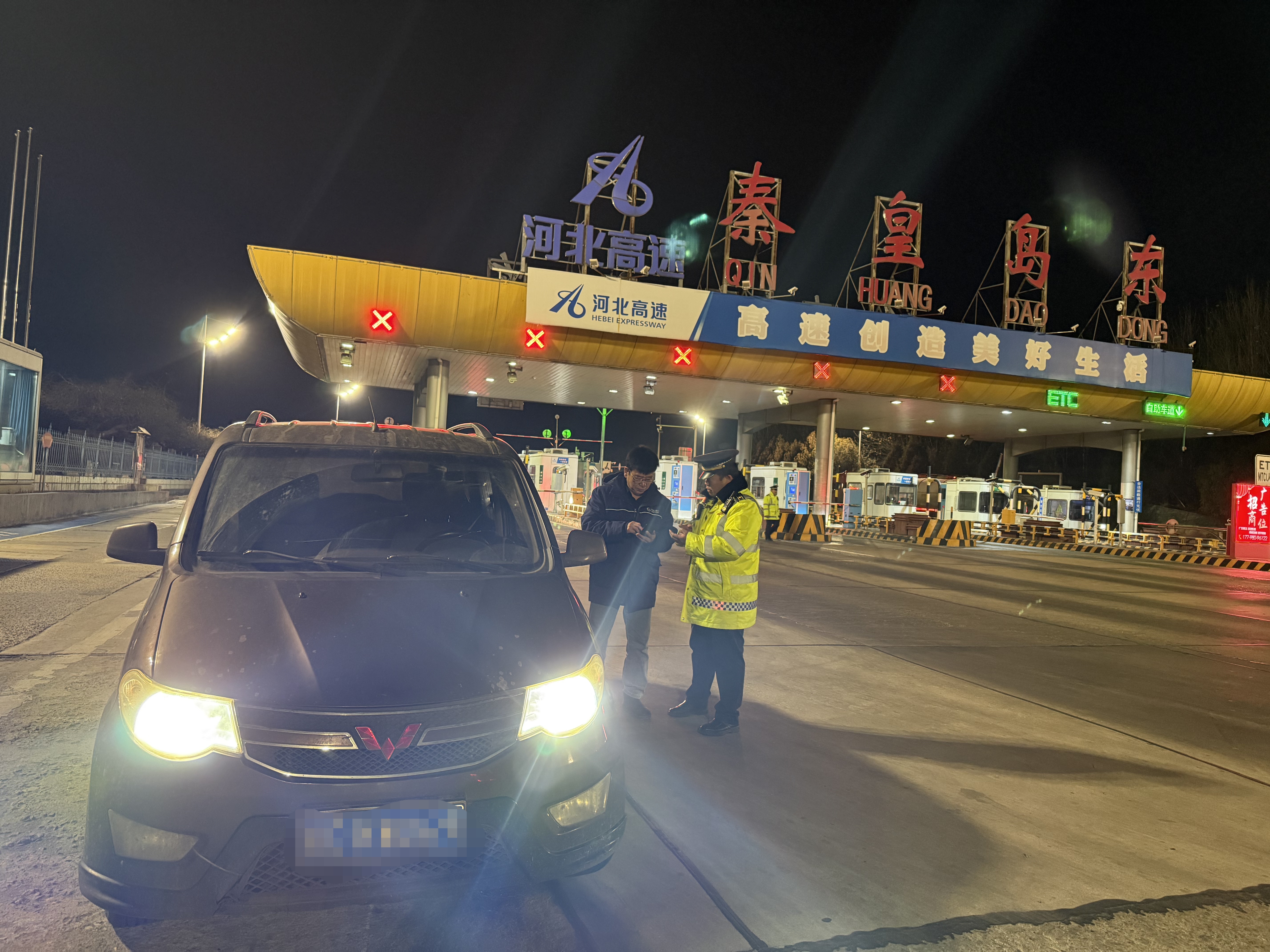 夜色中,收费亭的灯光与车辆大灯交相辉映,工作人员的荧光黄制服格外醒目。在秦皇岛东站,高效通行有速度,便民服务更有温度,每一次耐心指导,都让司乘人员感受到了河北高速的暖心守护。