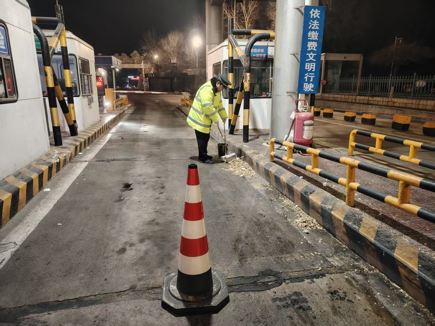 3月5日,夜班疏导人员在例行巡查时,发现车道内掉落大量木屑杂物,若不及时清理,极易导致车辆打滑、剐蹭,影响通行秩序甚至引发交通事故。疏导人员第一时间按照安全作业规范,做好现场警示,快速高效完成清理工作,及时消除隐患,保障了车道畅通与行车安全。
