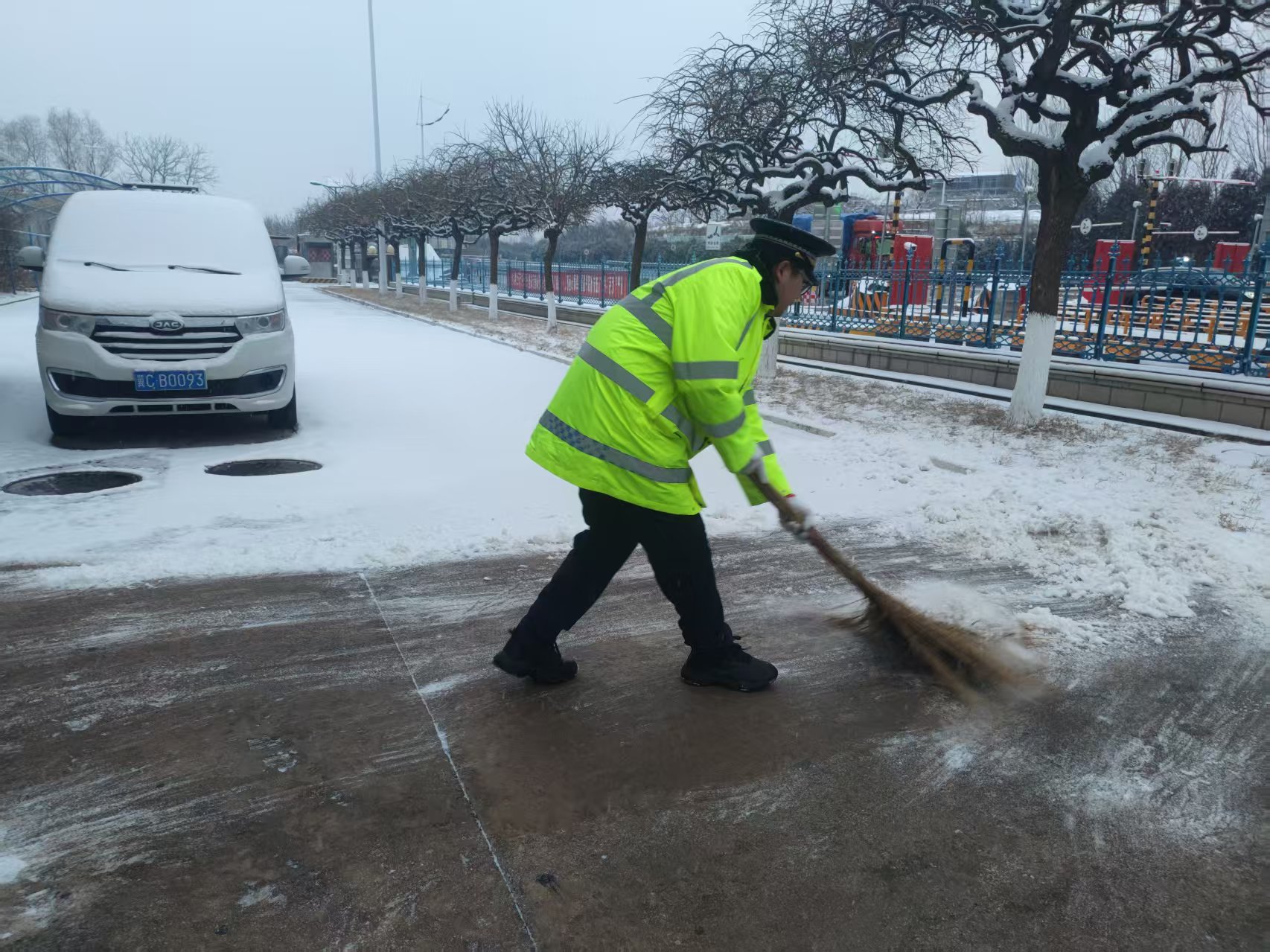 作业过程中,全体工作人员不畏严寒,顶风冒雪,坚守岗位、连续奋战,以高度的责任心与使命感,全力保障站区通行秩序与人员车辆安全。通过快速响应、精准处置,及时消除降雪带来的安全隐患,确保收费车道畅通有序、过往车辆通行平稳、站内人员出行安全。