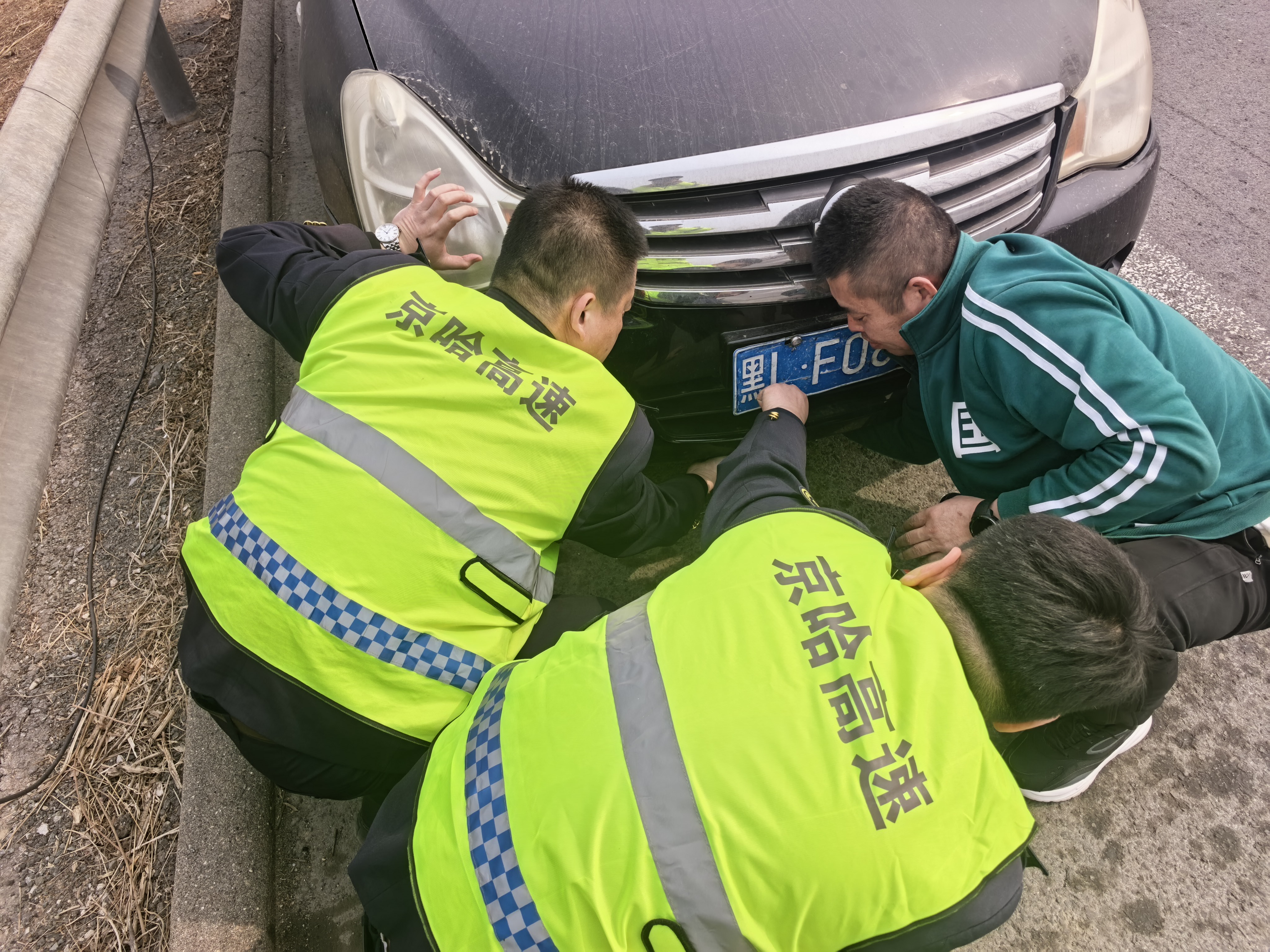 3月24日上午,京秦分公司抚宁收费站内广场,一辆小轿车打着双闪,司机神色焦急地向工作人员求助。