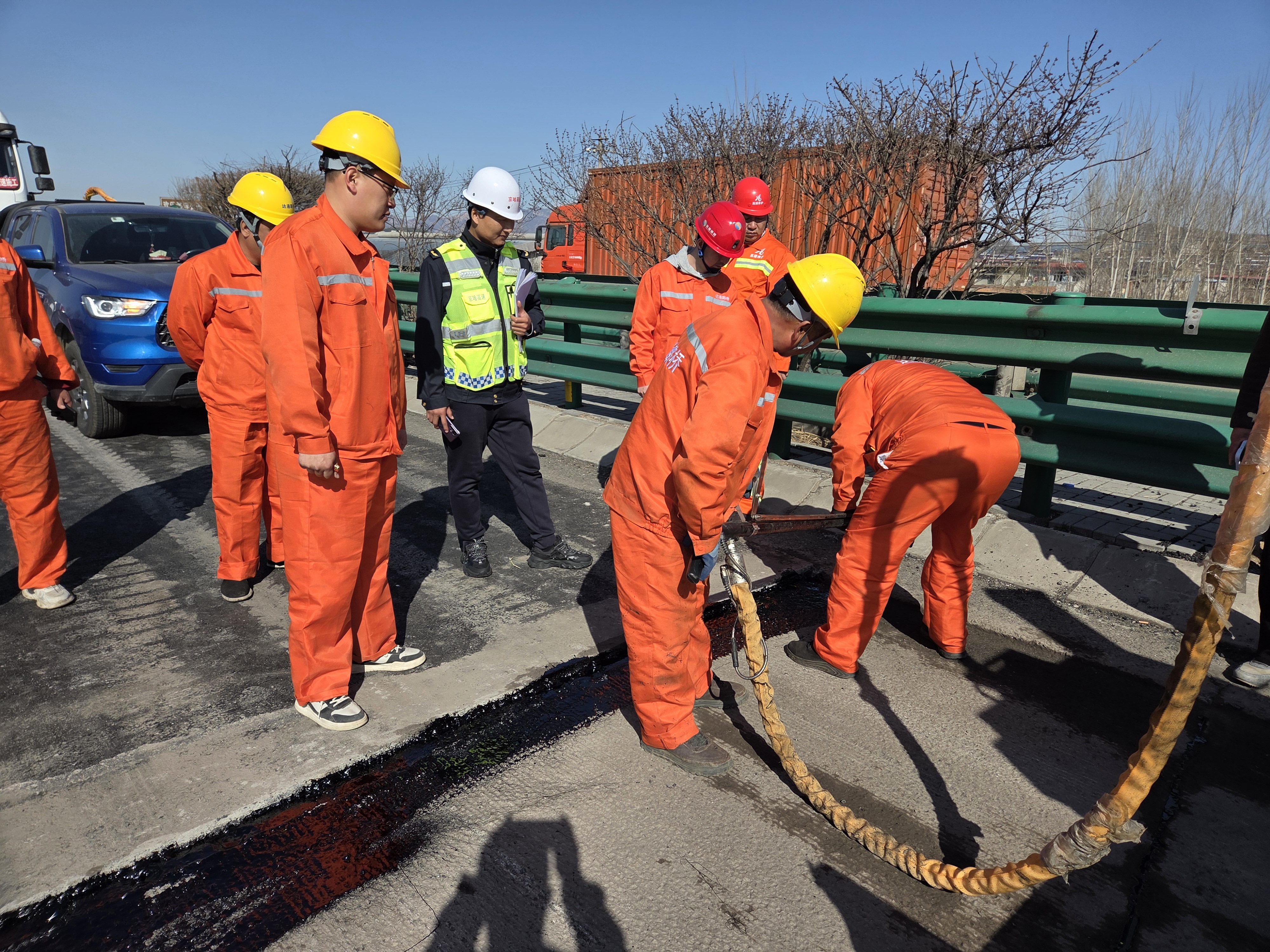 3月27日,京秦分公司秦皇岛保通保畅应急大队养护中队针对辖区路面专项施工项目开展现场安全监管与质量督导,全力保障道路通行安全与工程高效推进。