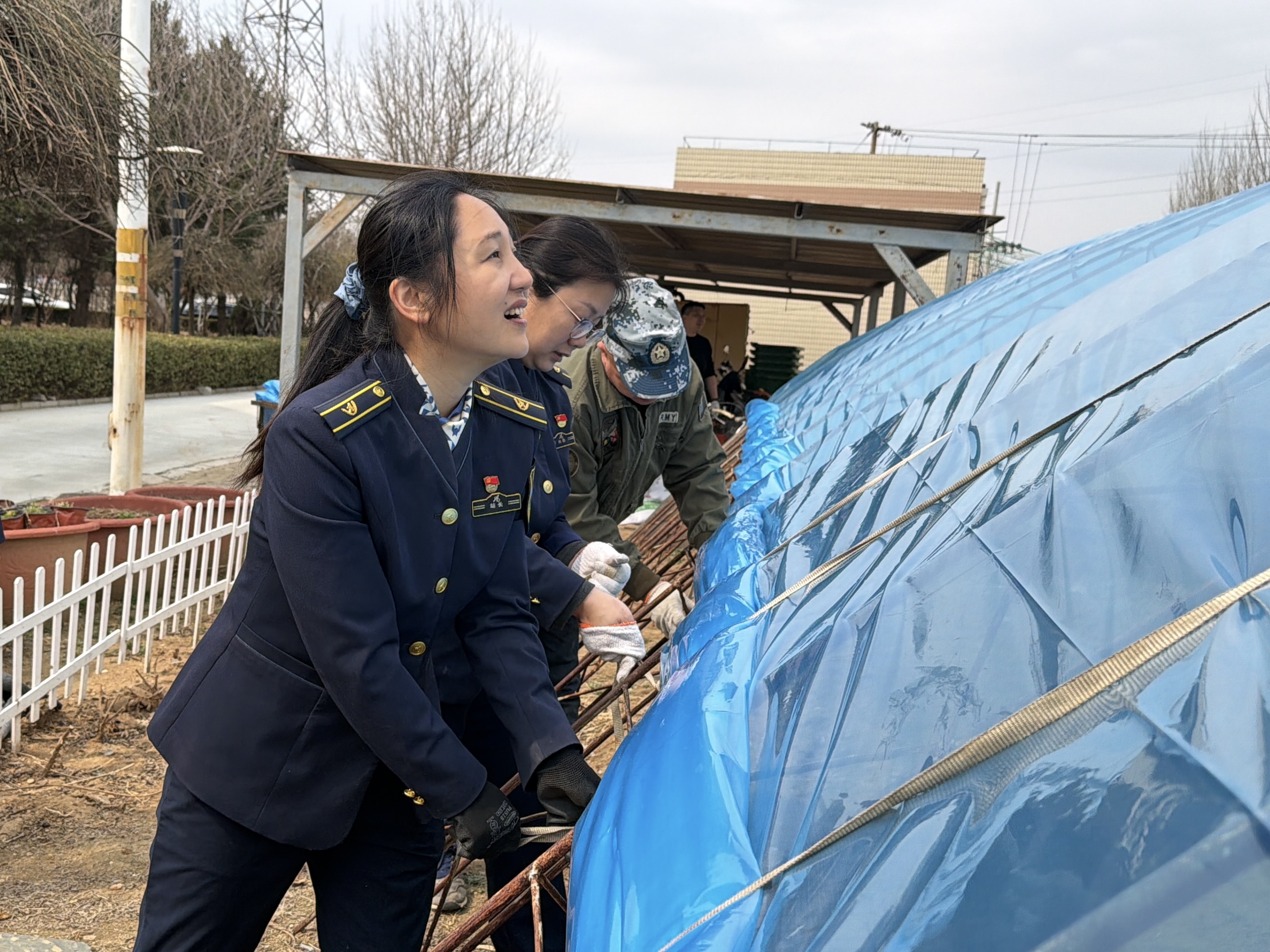 近日,京秦分公司北戴河收费站扎实推进分公司党委部署的绿色站区建设工作,党员干部带头组织职工自主修缮暖棚,为花卉育苗培育、实现降本增效、美化站区环境打下坚实基础。大家分工协作、默契配合,化身“修缮工匠”对暖棚进行全面整修,有序拆除老旧棚膜、精心铺设新保温棚膜并做好密封固定,确保施工规范。
