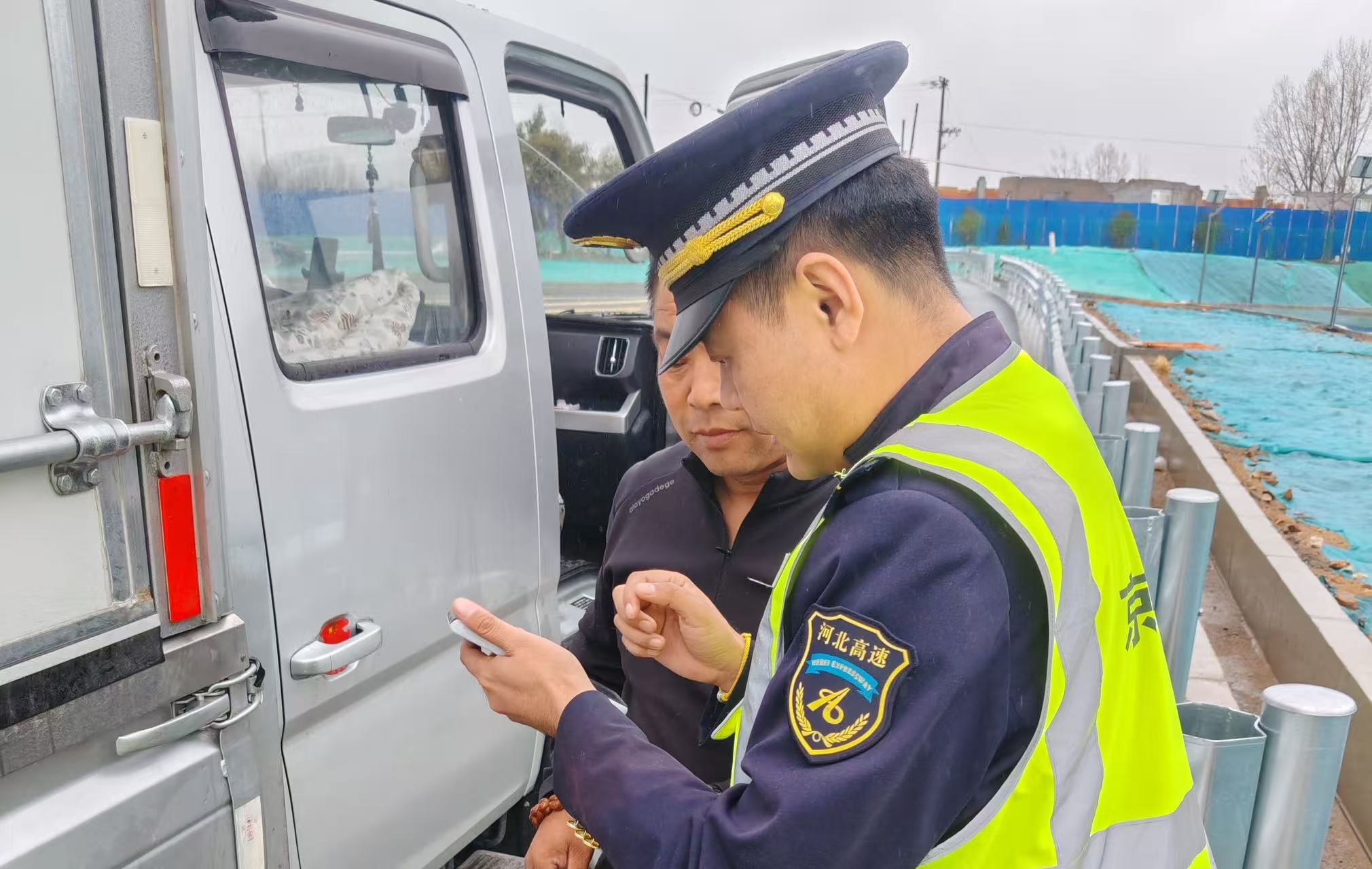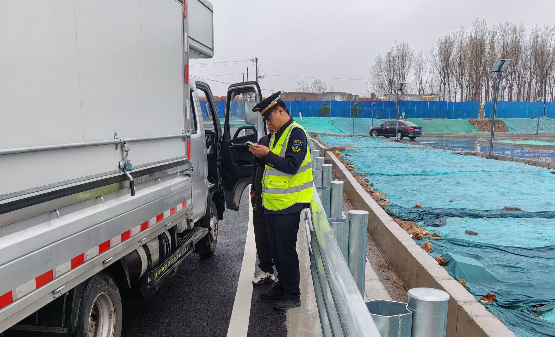 4月9日16时左右,在京秦分公司山海关古城收费站,一辆绿通运输货车完成鲜活农产品验货流程后,货车司机向现场工作人员求助。
