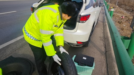 1月16日14时30分,京秦分公司唐山保通保畅应急大队二中队巡逻队员在北京方向K164+000公里处,发现一辆因右后轮爆胎停靠应急车道的白色轿车,驾驶员因不会换胎手足无措。 队员迅速规范布设安全警示区域,随即分工协作...[详细]
