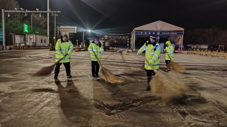 12月16日白班,京秦分公司秦皇岛东收费站X07车道内,一辆汽车突发漏油状况,油污散落路面,极易导致过往车辆打滑,给通行安全埋下隐患。 班长马伟乐第一时间察觉情况,随即召集疏导员郑君、李云开投入清理工...[详细]
