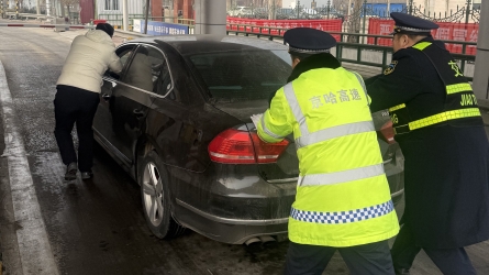 12月22日,一辆黑色轿车打着双闪停在了卢龙收费站内广场,车主焦急地试图推动车辆,却显得力不从心。这一幕被正在执岗的二班疏导员张乐看到后,急忙呼叫班长邸艳华,两人快步走到车旁,为不影响其他车辆通行,简单...[详细]