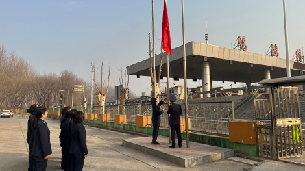 2月17日大年初一,京秦分公司鸦鸿桥收费站举行庄严的春节升旗仪式,在岗值守人员身着工装、整齐列队,以忠诚坚守向国旗致敬,为春运护航。 雄壮的国歌声划破站区的宁静,五星红旗冉冉升起、迎风飘扬。全体人员神情肃...[详细]